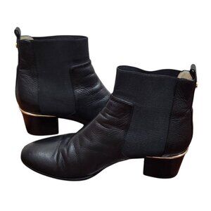 Jimmy Choo Black Leather Chelsea Ankle Boots US10/EU41 Gold Heel Accent Slip-On