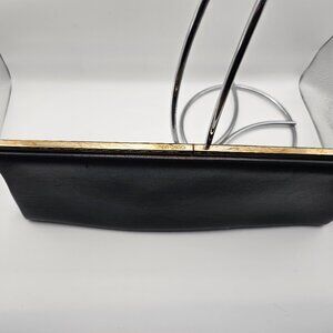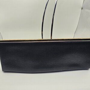 Jimmy Choo Black Leather Clutch – Gold Frame, Large Size, Made in Italy