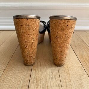 Jimmy Choo Black Leather Cork Wedge Sandals – Size Approx. 8