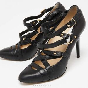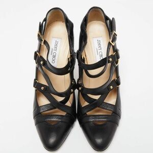 Jimmy Choo Black Leather Cross Strap Jazz Pumps size 37.5