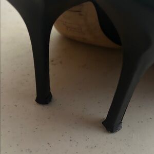 Chic black leather heels by Jimmy Choo. Sleek design with pointed toe. Perfect for elegant occasions.