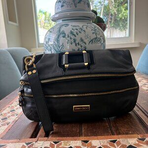Jimmy Choo Black Leather Mave Foldover Clutch Carry Bag Authentic