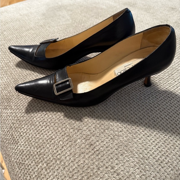Jimmy Choo Black Leather Pointed Toe Buckle Pumps Heels Size 6