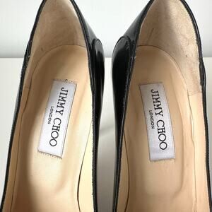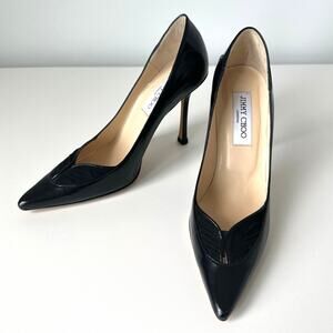 Jimmy Choo Black Leather Pointed Toe Heels Pumps Size 37.5