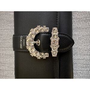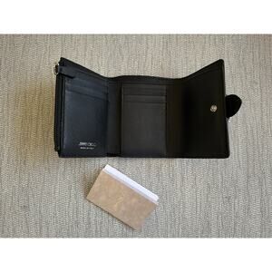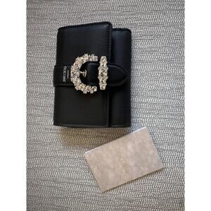 Jimmy Choo Black Leather Trifold Wallet NEW Crystal Jewel Card Holder Small