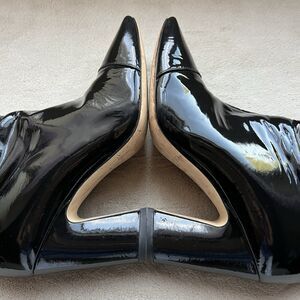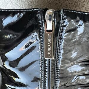 Jimmy Choo Black Patent Leather Block Heel Ankle Boot Women EU 36.5 US 6.5 Chic