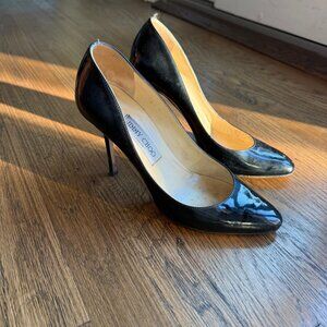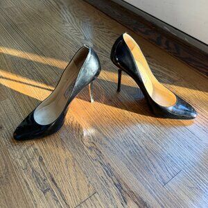 Elegant black patent leather heels. Sleek pointed toe. High stiletto 3 inch heel. Good condition. Some wear, not heavy wear. These were worn 2 or 3 times.