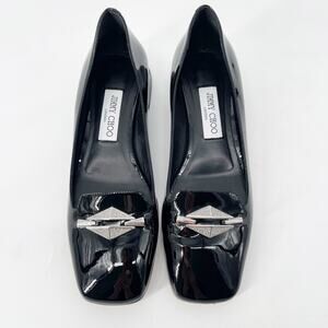 Jimmy Choo Black Patent Leather Ravi Crystal Square Toe Ballerina Pumps IT 38