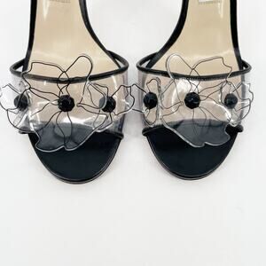 Jimmy Choo Black Saskia 85 Embellished Floral PVC Slip-On Sandal Heels IT 39.5