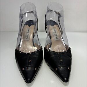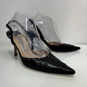 Jimmy Choo Black Studded Leather Pointed Toe Sling Back Stiletto Pumps Size 39.5