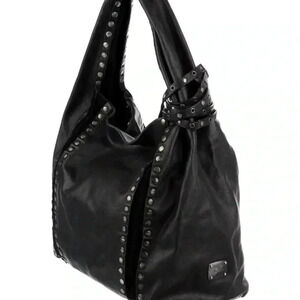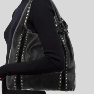 Elegant black shoulder bag with studded details. Sleek and stylish design. Perfect for any occasion.