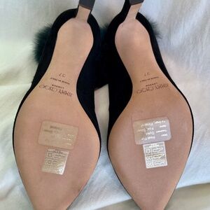 Jimmy Choo Black Suede Heels with Fox Fur PomPoms, Sz. 37/US7