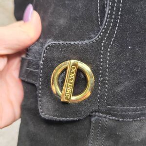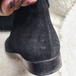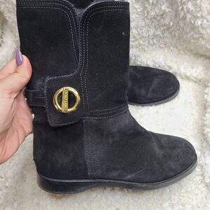 Jimmy Choo Black Suede Leather Mid Calf Fur Lined Boots sz 36.5