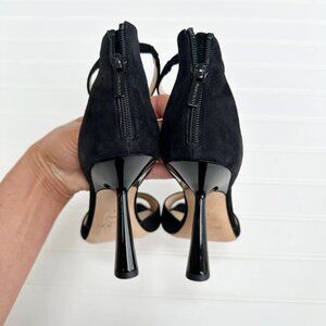 Jimmy Choo Black Suede Reon Sandals Square Toe Ankle Strap 37