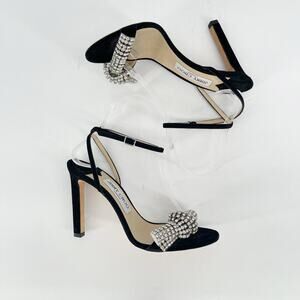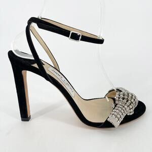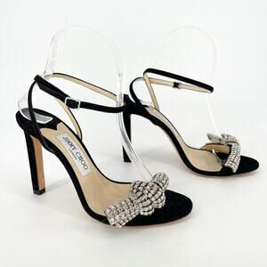 Jimmy Choo Black Suede Thyra 100 Crystal Embellished Sandal Heel size IT 38