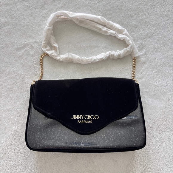 Jimmy Choo Black Velvet Shimmer Crossbody Evening Clutch with Chain