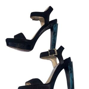 Chic black heels with striking blue accents. Bold platform design. Ideal for making a statement.