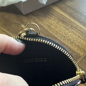 Jimmy Choo Black and Tan Round Coin Pouch Full Inclusion