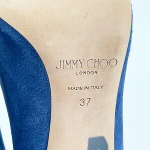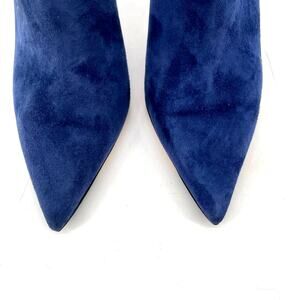 Jimmy Choo Blaize 100 Navy Blue Suede Ankle Bootie Crystal Strap size IT 37