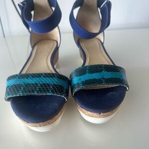 Jimmy Choo Blue Watersnake Neat Ankle Strap Cork Wedge Platform Sandals Size 40
