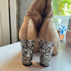 Jimmy Choo Bootie boots bling Stretch Maine 100 beige booties rhinestone glitter