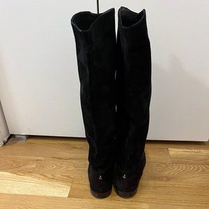 Jimmy Choo Bree Suede Flat Knee High Boots Black 36 1/2 36.5