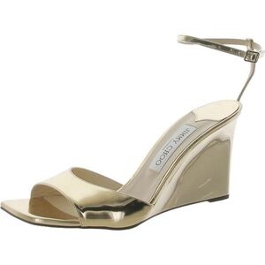 Jimmy Choo Brien 85 Wedge Sandals Gold Open Square Toe Ankle Strap