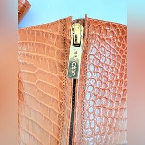 Jimmy Choo Brown Croc Embossed Leather Minori Ankle Length JC logo Boots EU 42