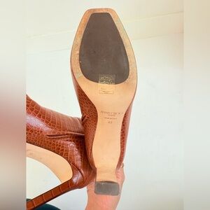 Jimmy Choo Brown Croc Embossed Leather Minori Ankle Length JC logo Boots EU 42