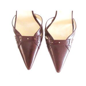 Jimmy Choo Brown Leather Pointy Toe High Heel Designer Singback 8.5 M