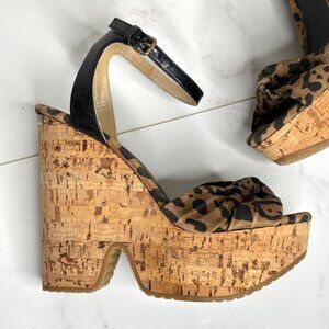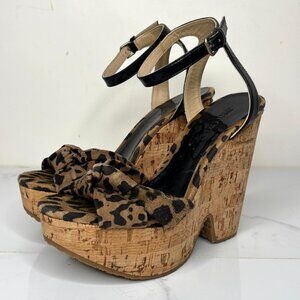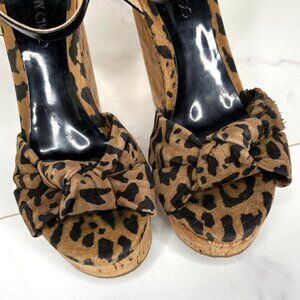 Jimmy Choo Brown Leopard Print Suede Leather Cork Platform Wedge Sandals 37 7