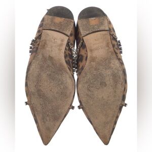 Elegant leopard print flats with sparkling crystal straps. Perfect for a glamorous look.