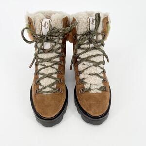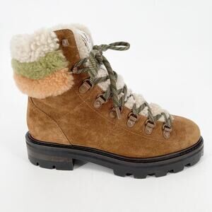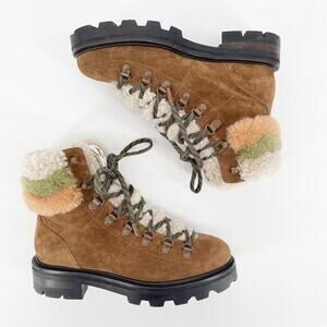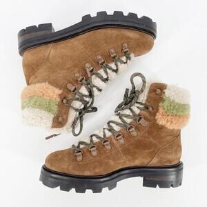 Jimmy Choo Brown Suede Eshe Colorblock Lamb Fur Lined Hiking Boot size IT 36.5