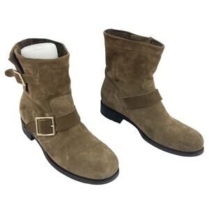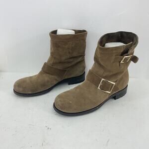 Jimmy Choo Brown Suede Leather Biker Boots Women's Size 9.5 Preowned