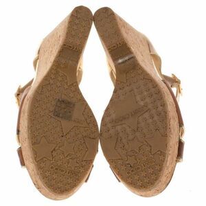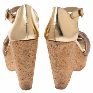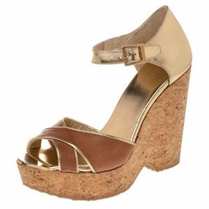 Jimmy Choo Brown/Metallic Gold Leather Pape Mirrored Cork Wedge Sandals Size 7