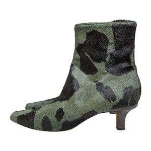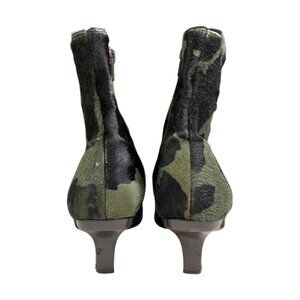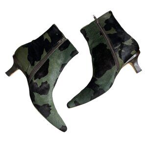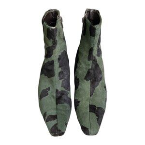 Jimmy Choo Calf Hair Cow Print Kitten Heel Ankle Boot Green 9.5 Western Boho
