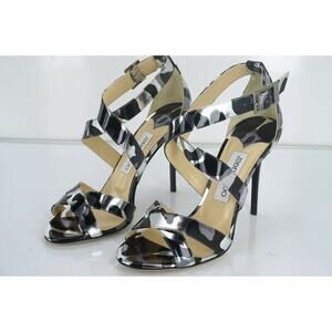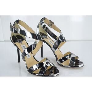 JIMMY CHOO CAMOUFLAGE METALLIC BLACK LOTTIE ANKLE STRAP SANDAL SZ 38 NEW $850