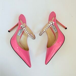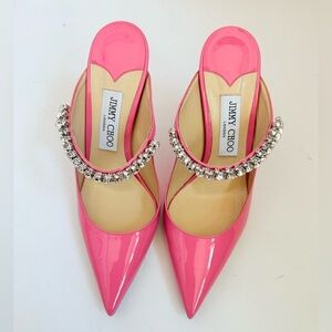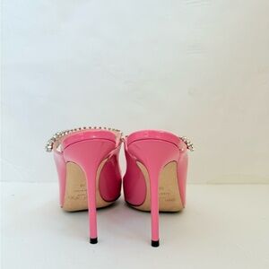 Jimmy Choo Candy Pink Patent Leather Bing 100 Crystal Embellished Mule pumps 38