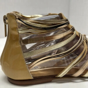 Jimmy Choo Chaya Gladiator Sandals Shoes Nude Patent Gold Leather EU 39 US 9
