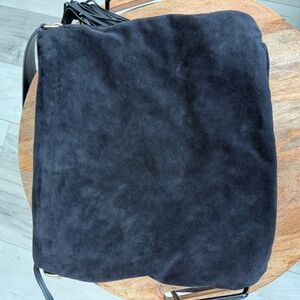 Elegant and timeless Jimmy Choo bucket bag crafted from luxurious black suede. Features the signature cinch silhouette with gold-tone hardware and an adjustable strap for versatile shoulder or crossbody wear.