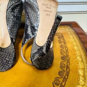 Jimmy Choo Clue Snakeskin Python Leather Slingback Platform Heels Nude Sz 38 1/2