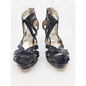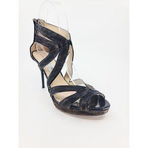 Jimmy Choo Collar 100 Metallic Gold Black Ankle Strap Sandals Size 36.5