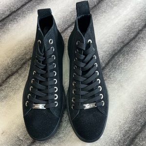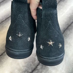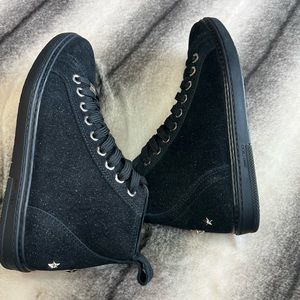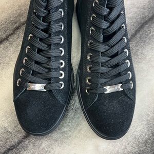 Jimmy Choo Colt Soft Glitter Black Suede Lace Up High Top Sneakers