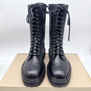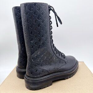 Jimmy Choo Cora Monogram Logo Debossed Combat Boots Black Leather EU 36.5 US 6.5