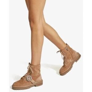Jimmy Choo Cora Suede Tan Combat Moto Boots