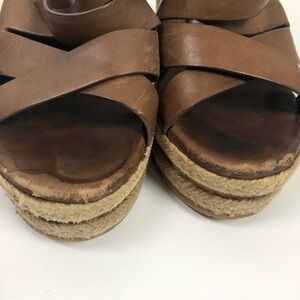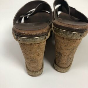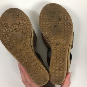 Jimmy Choo Cork Wedge 38 Heels Sandals Camel Brown Leather Strappy Shoes Women’s in okay condition show wear throughout please see pictures for condition