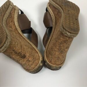Jimmy Choo Cork Wedge 38 Heels Sandals Camel Brown Leather Strappy Shoes