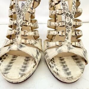 Jimmy Choo Cream & Gray Gladiator Criss Cross Heels Shoes Size 6