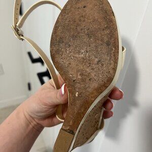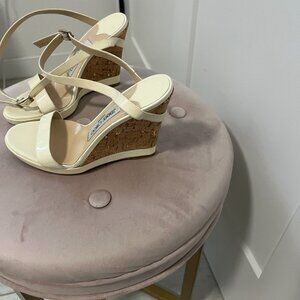 Jimmy Choo Cream Patent Leather Wedge Heel Sandals Size 35