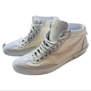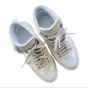 Elegant sneakers with cream leather. Gold logo and accents. Ideal for everyday style.